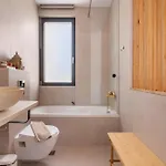 Tot de badkamerfaciliteiten van Villa Kala Loutraki - Private Pool & Sauna I Beach behoren ook een inloopdouche en een apart toilet. Er zijn een haardroger en handdoeken voor het comfort van de gasten.
